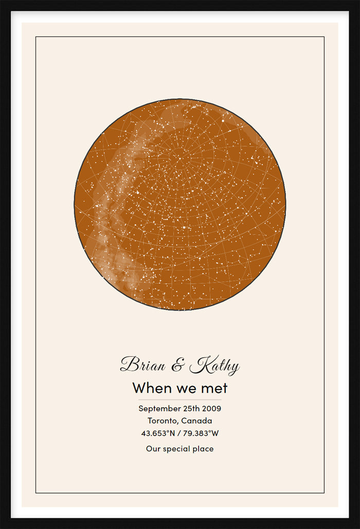 The stars that twinkled on the night you met can be captured forever, offering a unique and profound way to mark where your journeys intertwined, under the vast celestial canvas. It's a cosmic celebration of your when and where we met map, encapsulating the magic and romance of that time and place.